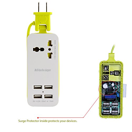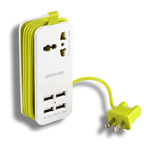AGPtek 5V 21W 1Ax4 USB Ports 110V-220V Input Portable Power Strip Travel Outlets with 5-feet Power Supply Cord (US Plug)