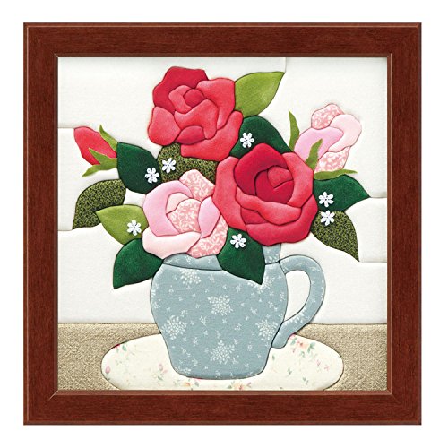 -. Title : さくらほりきり 手作りキット きめこみ バラとブルーポット 額付 内寸8インチ