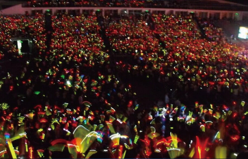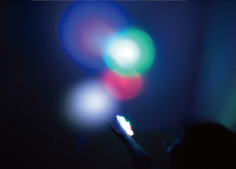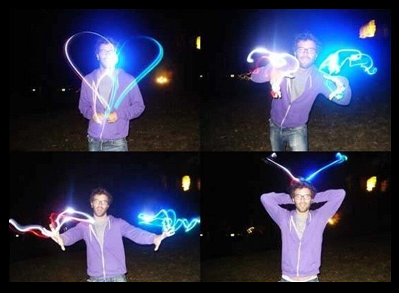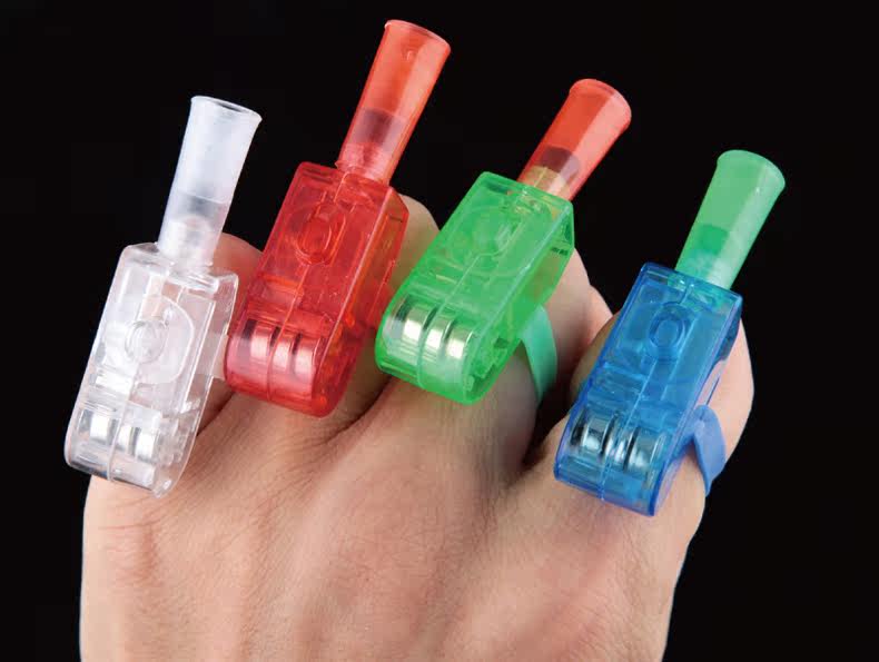 The rubber holster on the small lamp set on the finger to pull down, push the switch to light up, dancing arms can produce rapid flow of light and shadow effects!