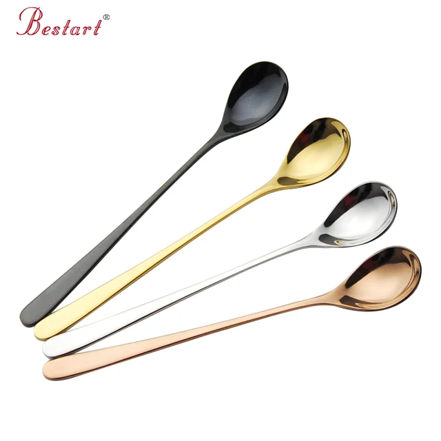 | [해외] 4 컬러 18/10 스테인레스 스틸 긴 손잡이 차 & 커피 스푼 세트 주방 액세서리 8 "4 개 아이스크림 Sundea 혼합 숟가락 |