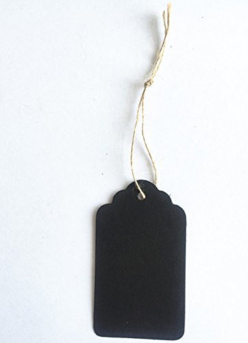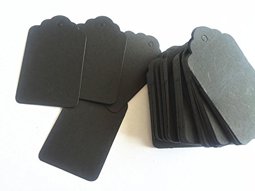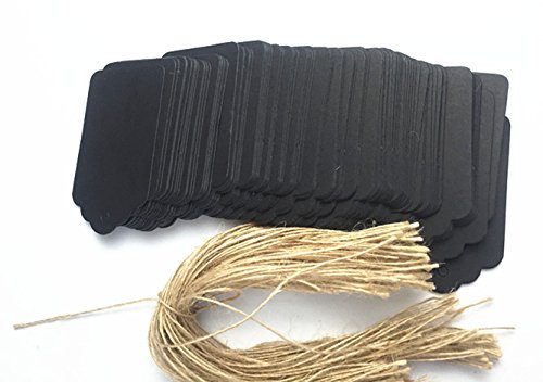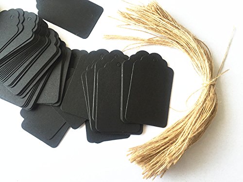 100pcs Black Paper Gift Tags with Free 100 Root Natural Jute Twine(Water Ripple)