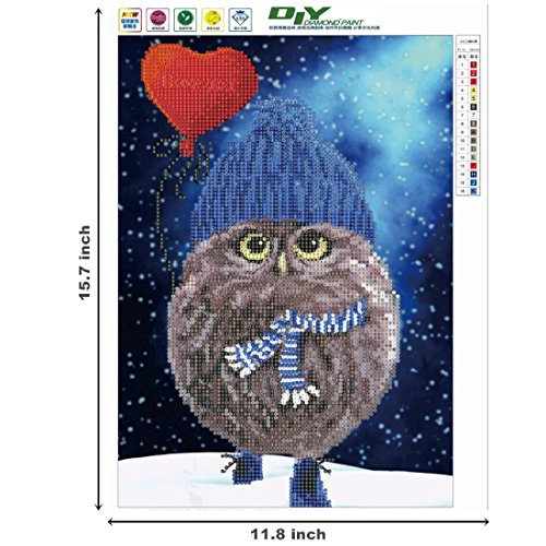 DIY 5D Diamond Painting by Number Kit, Cute Owl Crystal Rhinestone Embroidery Cross Stitch Ornaments Arts Craft Canvas Wall Decor