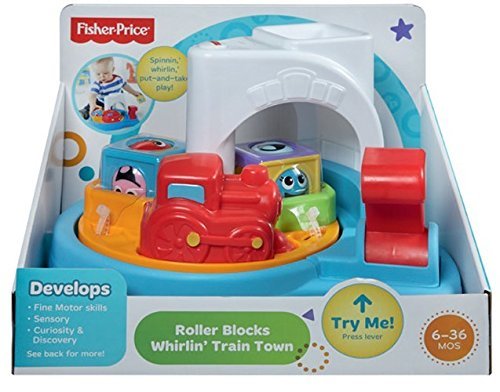 -. Binding : Toy -. Brand : Fisher-Price -. EAN : 5369802572081 -. Feature : Includes 2 roller blocks with silly faces that spin inside / Trains spins 'round 'n round when baby pulls the lever / Baby can put roller blocks in the train cars or stack them on top of tunnel / Easy to stack-unique design fits one atop another / Roller blocks are fun for stackin,' rollin' action play on their own, too! -. IsAdultProduct : 0 -. ItemPartNumber : CDC13 -. Label : Fisher Price -. Manufacturer : Fisher Price -. Model : CDC13 -. MPN : CDC13 -. PackageQuantity : 1 -. PartNumber : CDC13 -. ProductGroup : Toy -. ProductTypeName : TOYS_AND_GAMES -. Publisher : Fisher Price -. Studio : Fisher Price -. Title : Fisher-Price Roller Blocks Whirlin' Train Town -. UPC : 887961037418 -. Warranty : No Warranty
