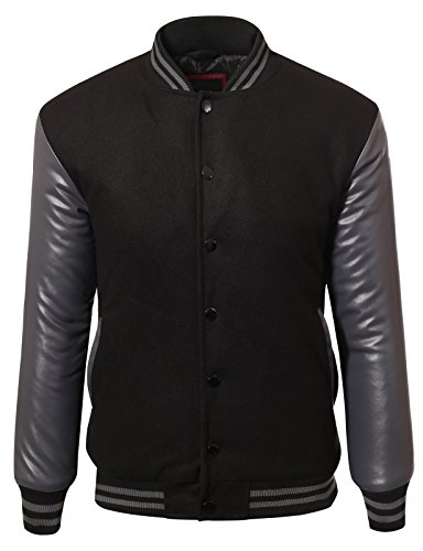Product Description JD Apparel aims to provide high quality products with an affordable prices. This varsity jacket is perfect for daily casual, camping, hiking, and etc. Since it is made out of 100% Polyester, it is perfect for winter! It featrues faux leather of arms and two front slash pockets. 0