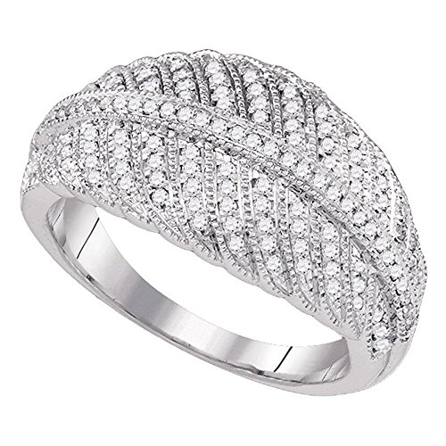 -. Title : Designer Style Diamond Cocktail Ring Solid 10k White Gold Dome Band Fashion Round Cluster Style 3/8 ctw
