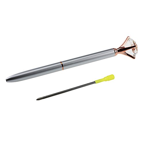 -. Title : Ballpoint Pen Fine Point Black Ink With Big Bling Rhinestones/Crystal Metal Pens with a Pen Refill (Silver 1)