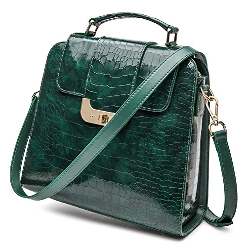 Genuine Leather Handbags for Women Bright Green Embossed-Crocodile Cowhide Top-handle Bags Satchels