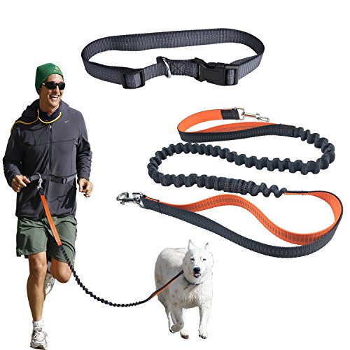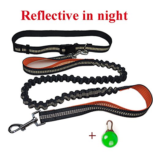 Hands-free, suitable for Running, Walking, Hiking, Relaxing and Laying in the park Reflective strip on waist belt to keep running safe in the night Adjustable waist belt (27' to 48')and elastic dog leash (extend from 63'to80') Shockproof leash for your pet when he decides to chase squirrel in the park
