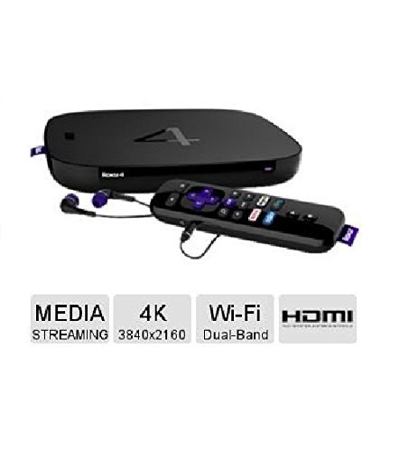 -. Binding : Electronics -. Feature : Roku 4 Wi-Fi Ultra HD 4K Streaming Media Player with Earbuds,HDMI Cable and Enhanced Remote with Voice Search ... -. IsEligibleForTradeIn : 1 -. Label : Roku -. Manufacturer : Roku -. ManufacturerPartsWarrantyDescription : 365 Days of hardware warranty -. MediaType : H.264/AVC -. Model : LYSB01DQ0BJ6O-ELECTRNCS -. MPN : LYSB01DQ0BJ6O-ELECTRNCS -. PartNumber : LYSB01DQ0BJ6O-ELECTRNCS -. ProductGroup : CE -. ProductTypeName : TUNER -. Publisher : Roku -. Studio : Roku -. Title : Roku 4 Wi-Fi Ultra HD 4K Streaming Media Player with Earbuds,HDMI Cable and Enhanced Remote with Voice Search