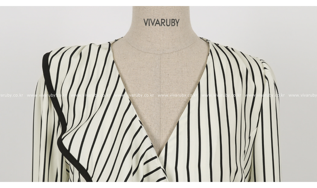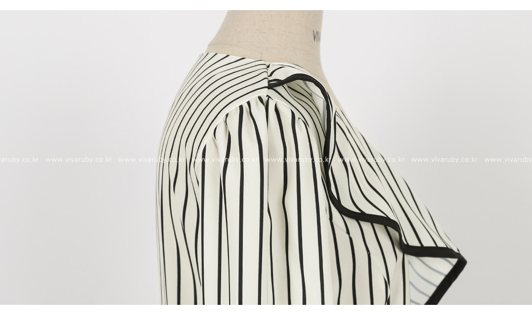 アンバランスしたラッフルネックラインにユニークさを加えてくれました