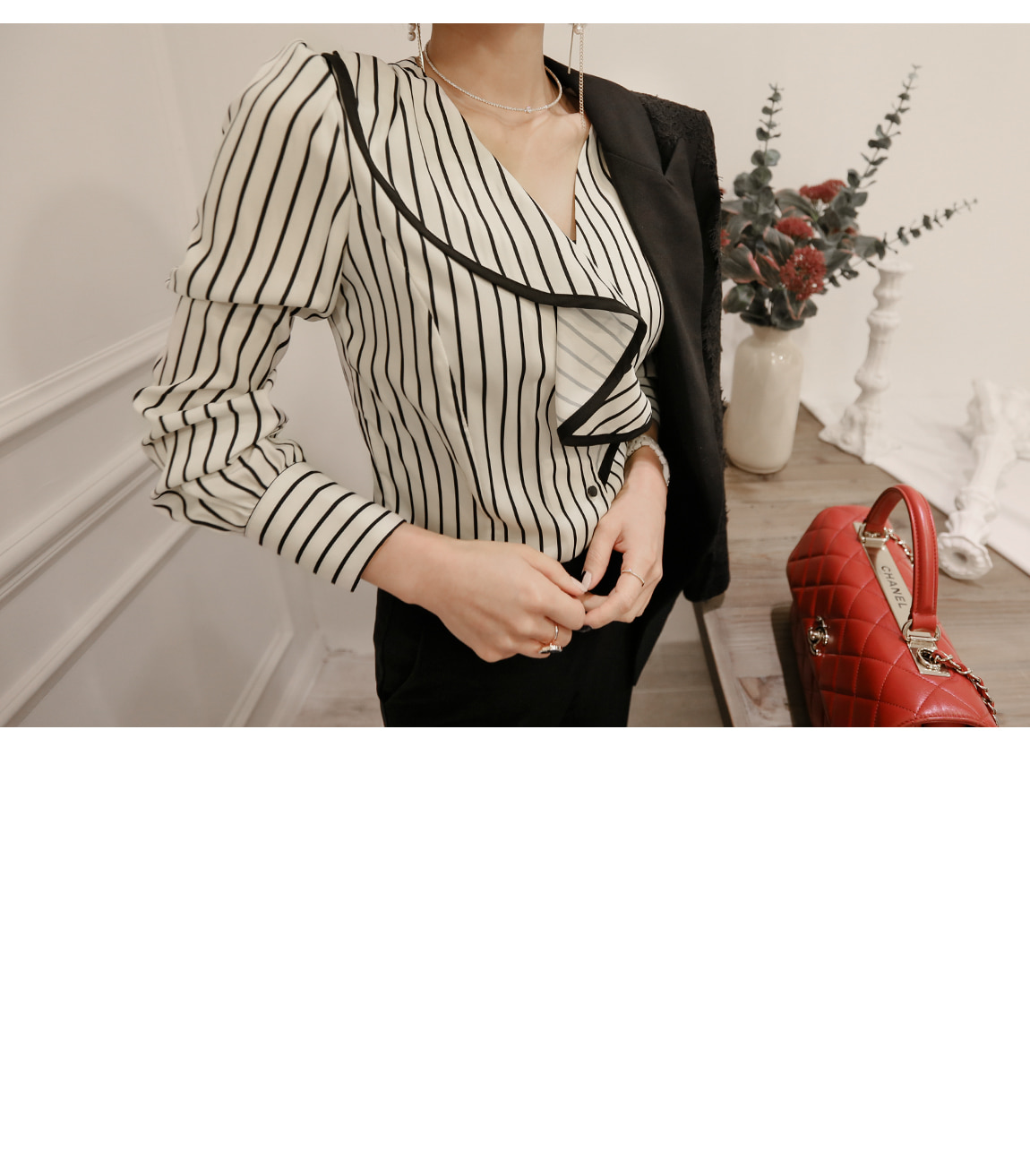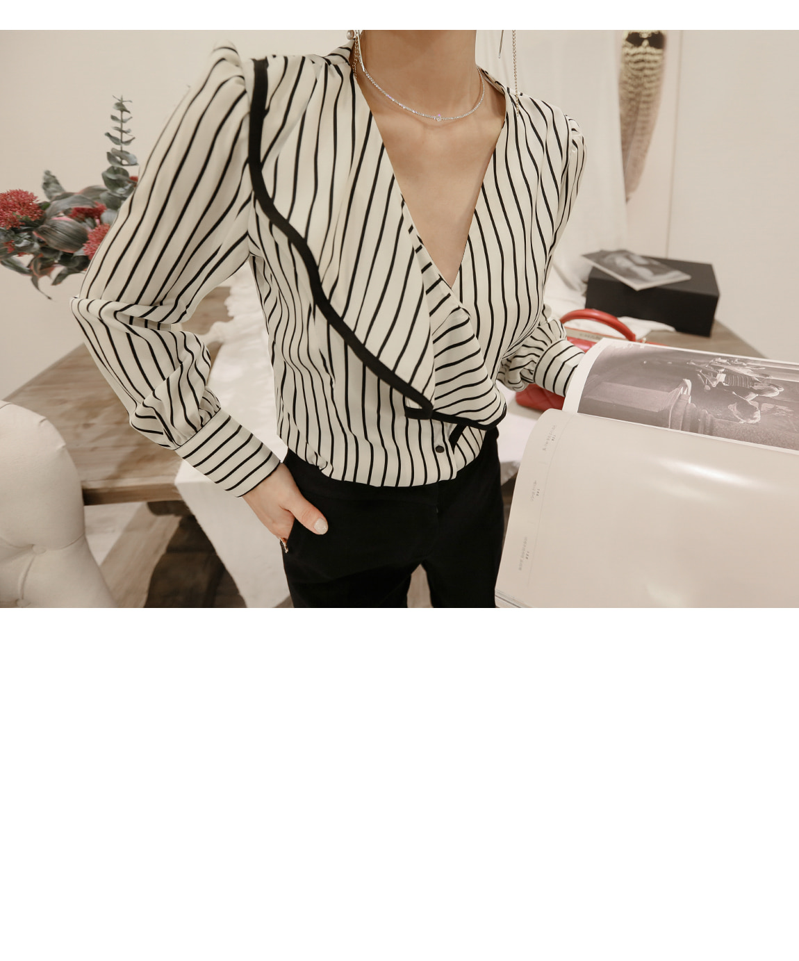 フェミニンなムードのブラウスです