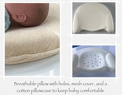 Baby Head Shaping Memory Foam Pillow & 100% Cotton Pillowcase. KEEP baby's head round. Prevent Flat Head Syndrome