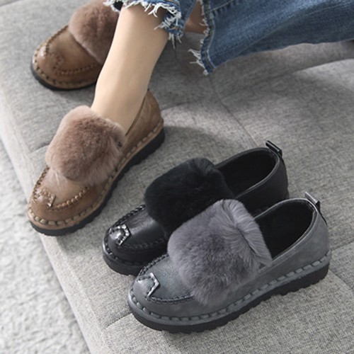 商品名:スリッポン レディース スニーカー フェイクファー 2017 秋冬 ファッション 靴 婦人靴