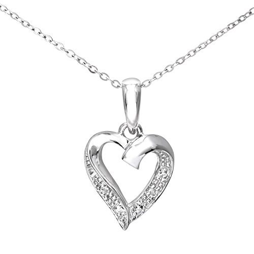 -. Title : Naava Damen-Anhänger 9k DiamantHerz + 46 cm Kette 375 Weißgold rhodiniert Diamant (0.01 ct) weiß Rundschliff - PP05058