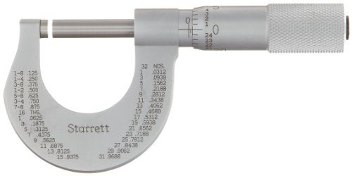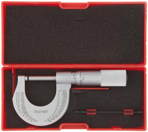 Starrett 230P Outside Micrometer, Plain Thimble, 0-1" Range, 0.001" Graduation, +/-0.0001" Accuracy