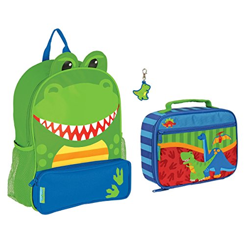 -. Binding : Baby Product -. Brand : Stephen Joseph -. Color : Green -. Department : boys -. EAN : 0799559609450 -. Feature : Cool Dinosaur Backpack and Lunch Box designed for preschoolers through the 2nd grade. / Backpack has roomy interior that is big enough to hold books and folders. Has a front zippered pouch for extra storage. Two mesh side pockets for drinks or markers. / Backpack is made of canvas and has adjustable cushioned shoulder straps and carrying hook. / Lunch box is fully lined and insulated and is BPA and Phthalate Free. Zippered pouch on the front for extra storage. / Backpack - 12" wide x 14" tall x 4" Deep. Lunch Box - 10" X 7" X 3". Available at Daisy May's Boutique with other great gear for kids. -. Label : Stephen Joseph -. Manufacturer : Stephen Joseph -. ProductGroup : Baby Product -. ProductTypeName : BABY_PRODUCT -. Publisher : Stephen Joseph -. Size : 3T, 4T, 5T, 6X, preschool, kindergarten -. Studio : Stephen Joseph -. Title : Stephen Joseph Boys Sidekick Dinosaur Backpack and Lunch Box with Zipper Pull - Kids Backpacks -. UPC : 799559609450