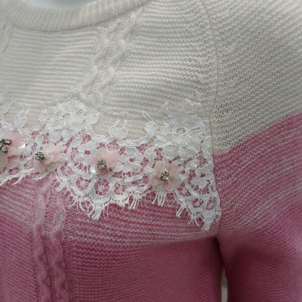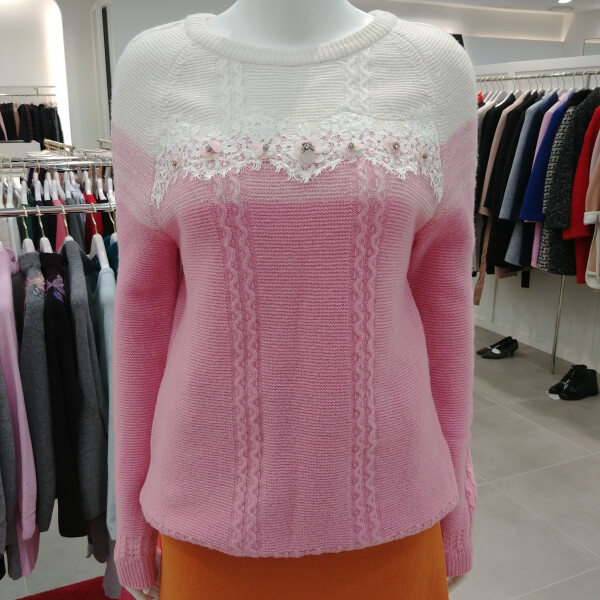 여성스러운 느낌의 그라데이션 몸판과 레이스비딩 장식이 포인트인 니트입니당 ♥♥♥