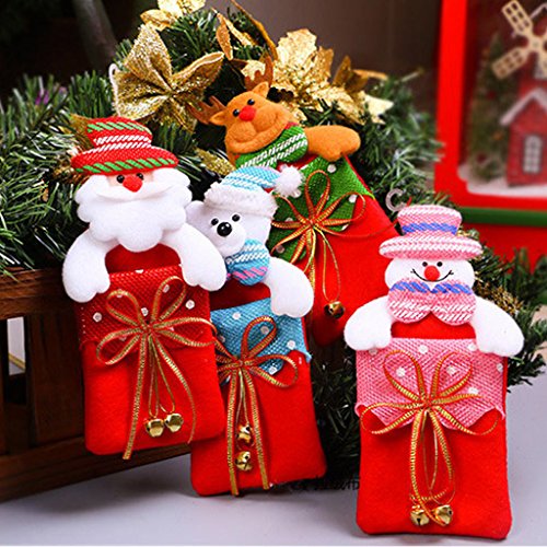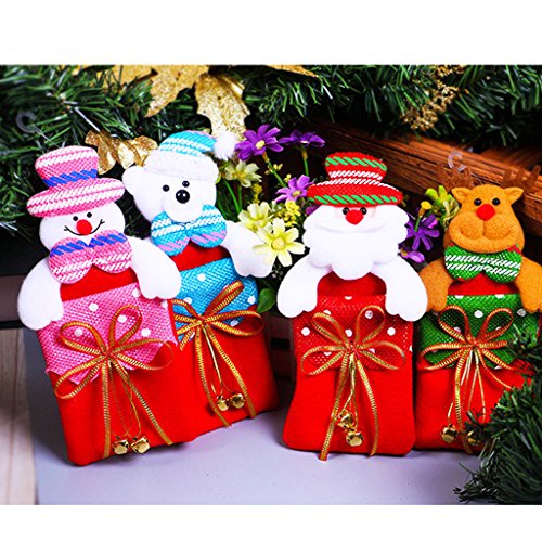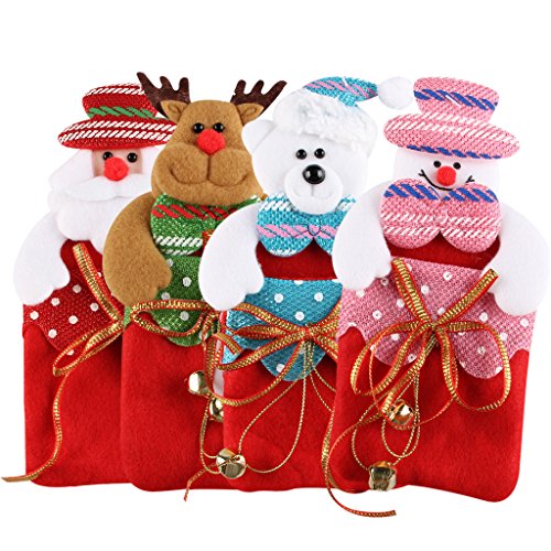 Christmas Gift Bags, IFOYO 4 Pack Cartoon Hanging Christmas Gift Bags Small Christmas Tree Decorations Christmas Treat Candy Bags