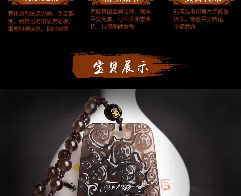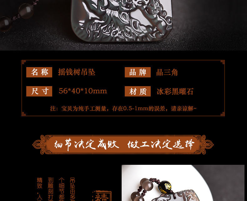 开光天然冰种黑曜石吊坠摇钱树男女项链吉祥物饰品招财树挂件