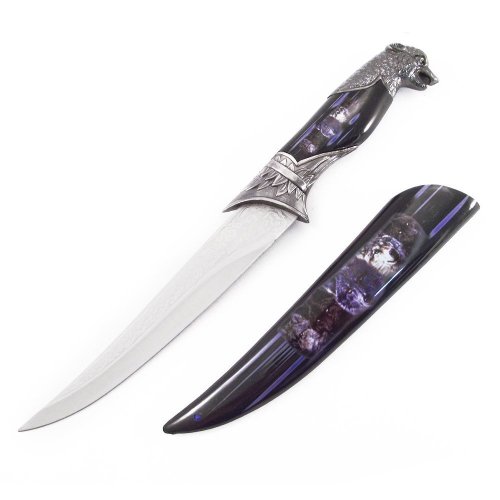 Black American Flag Wolf Fantasy Dagger Bowie Knife w/ Sheath