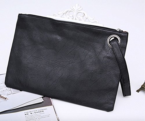 -. Feature : Import>Handbags Type: Evening and Daily Clutches>Material: PU leather.>Lining Material: Polyester / Interior: Interior 1 Zipper Pocket, Interior 2 Slot Pocket / Size: (W)13.5 x (H)9.7x (D)0.5 inches>Weight: Only 0.4 pounds weight. / Pattern Type: Solid ( black, mint, red, gray) / A big clutch that can not only be an evening party bag, but also can be a ladies everyday purse.