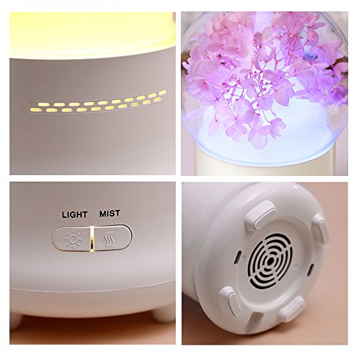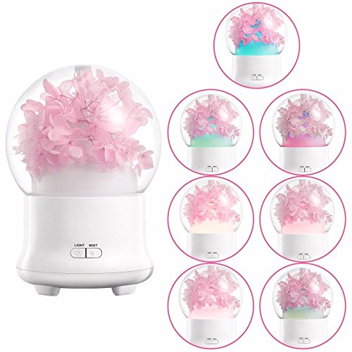 - Beautiful Home Decor: From babies to adults, our decorative oil diffuser humidifier is ideal for all rooms! Place it in the baby's nursery, kids room, teens bedroom, college dorm room, or office! Its colorful and fresh preserved flowers against an all white diffuser can make relaxing desk decor, a calming coffee table centerpiece, or fresh side table night light. It's the perfect oil diffuser for the spring time!
