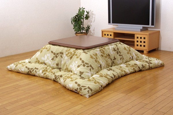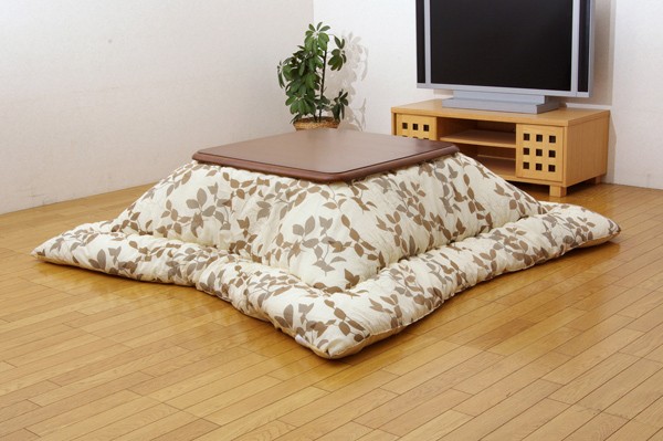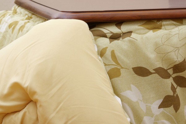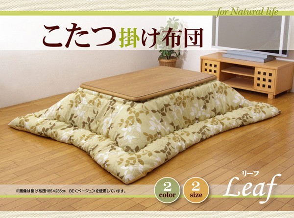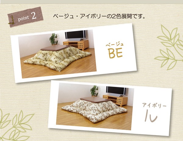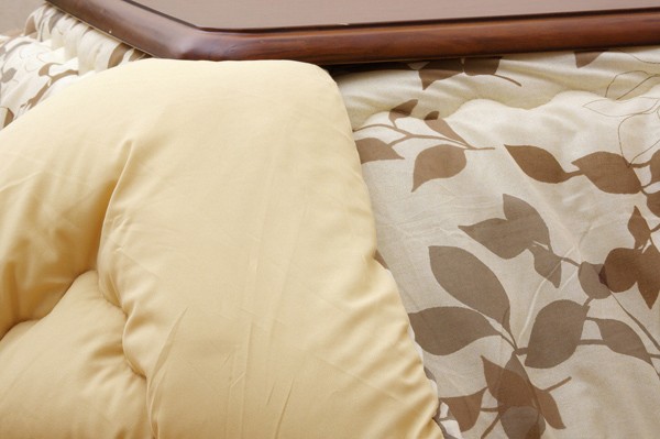 リーフ柄を全面にあしらったこたつ布団です。部分暖房のこたつは電気代もおトクです。
