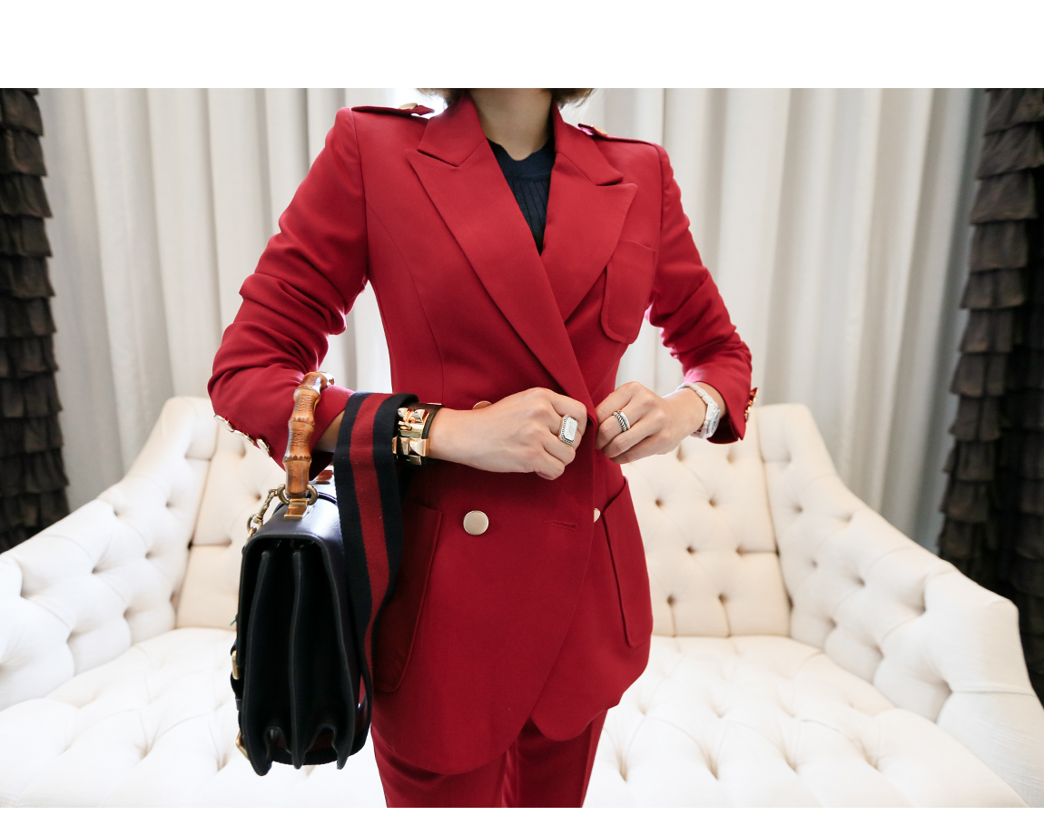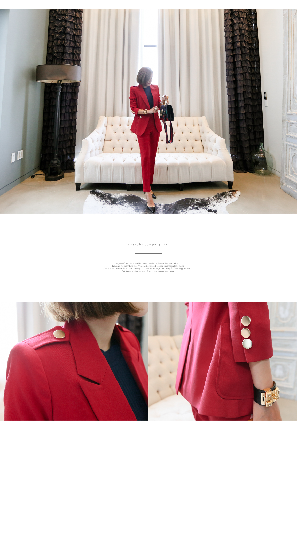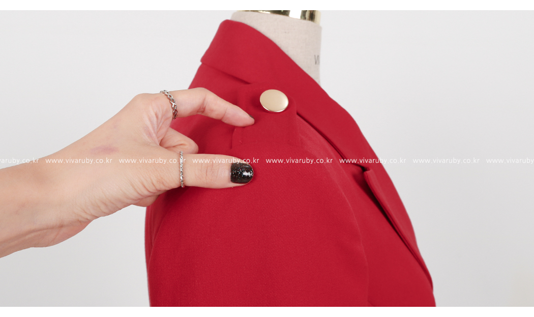 ショルダー・ラインの肩章、きめ細かさで洗練されたムードを作ってくれて