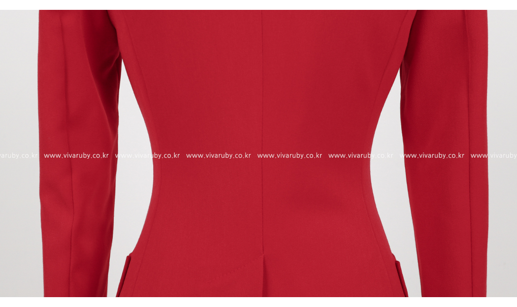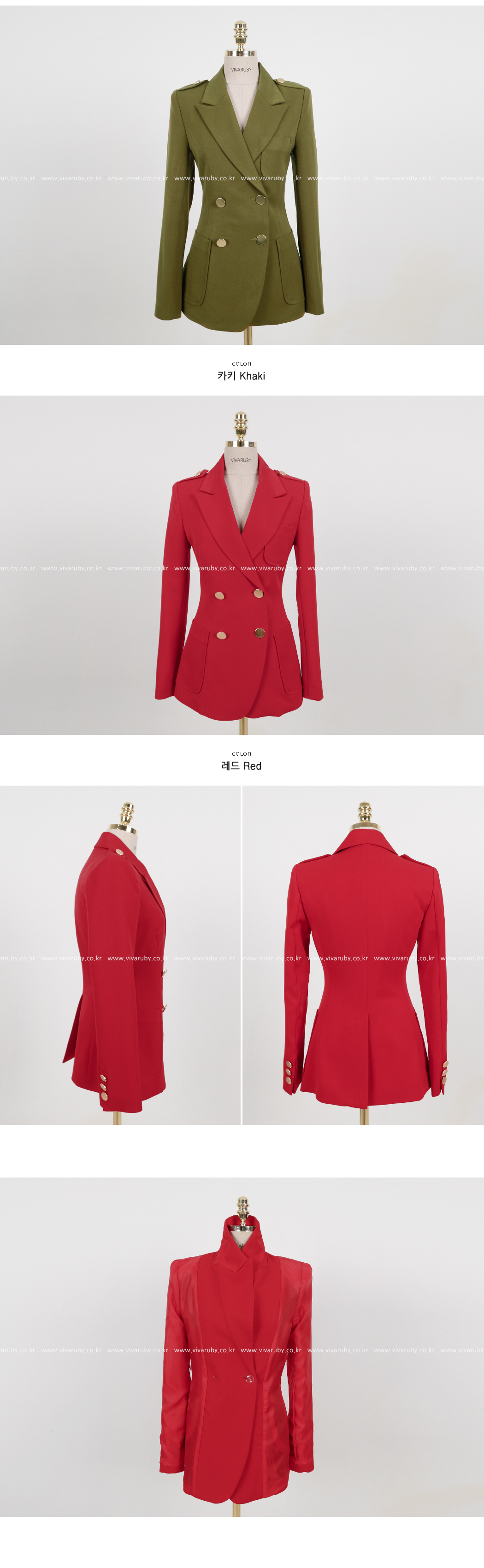 インナー・ボタンとショルダー・パッドがボディラインを整理してくれて