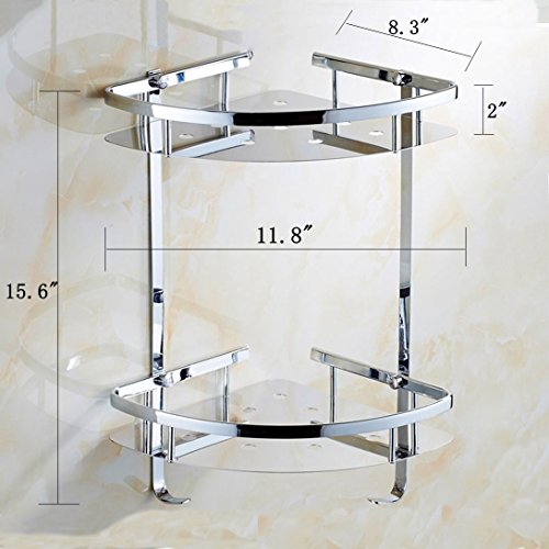 8.3" on the wall,2" tall and 15.6" distance from each tier, Convenient shape of shelves allows caddy to transform wasted corner space into a valuable area