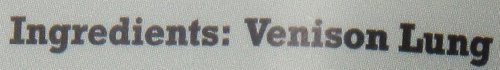 -. Feature : Dried Venison Lung Nets / 100% Natural Venison Lung / High Protein, Single Source Ingredient / Grain/Gluten Free / Great Training Treat / Size: 3oz Bag