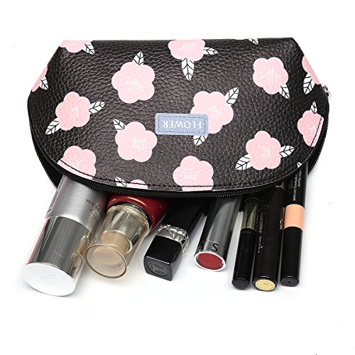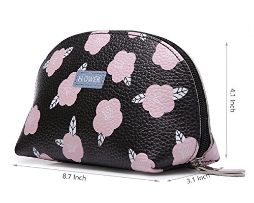 Cute Cosmetic Bags Floral Pattern Makeup Pouch Women’s Accessories Toiletries Travel Makeup Bag Flower (Black)