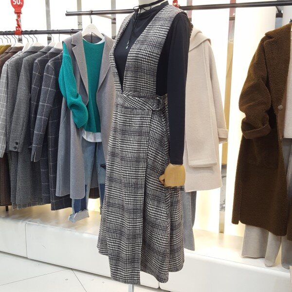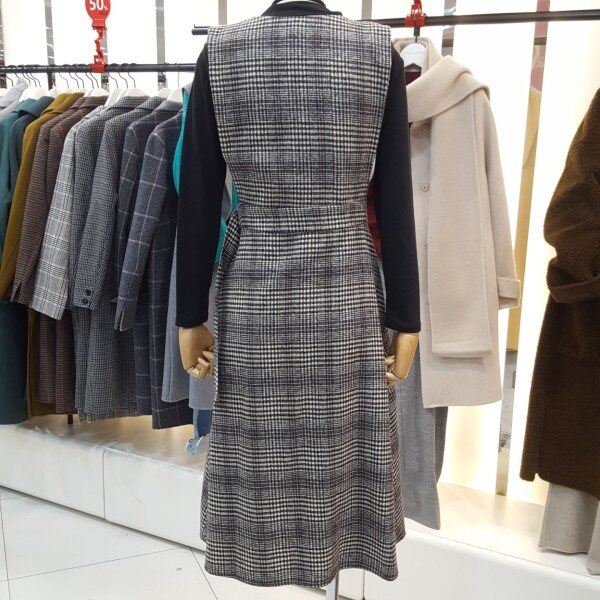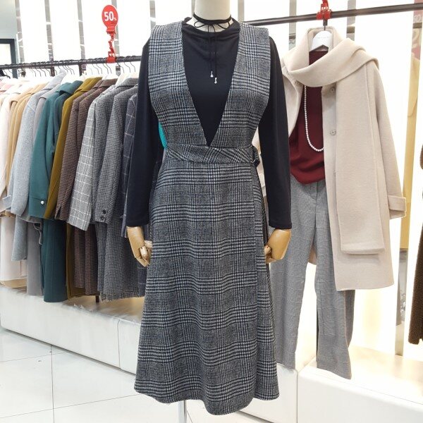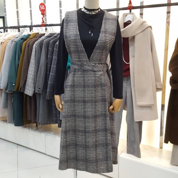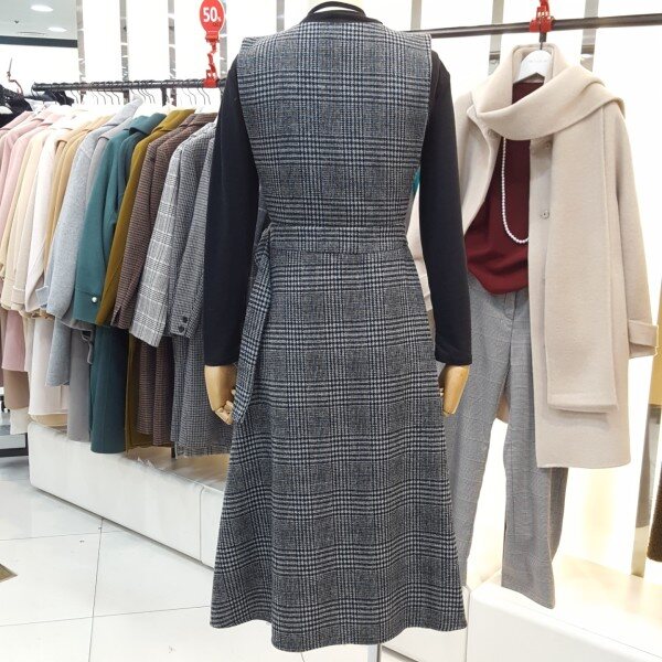레이어드 코디하기 좋은 베스트원피스입니다.체크패턴디자인으로 고급스러운 소재감을 더 고급스럽게 연줄하였으며 랩스타일로 벨트를 착용할수있는 아이템입니다.