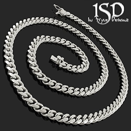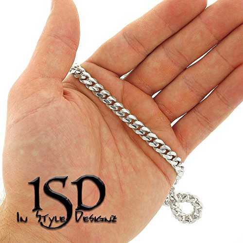 - Title : .925 Sterling Silver 7mm Solid Miami Cuban Curb Link Necklace Chain Rhodium Plated 24" - 30" (28 Inches)
