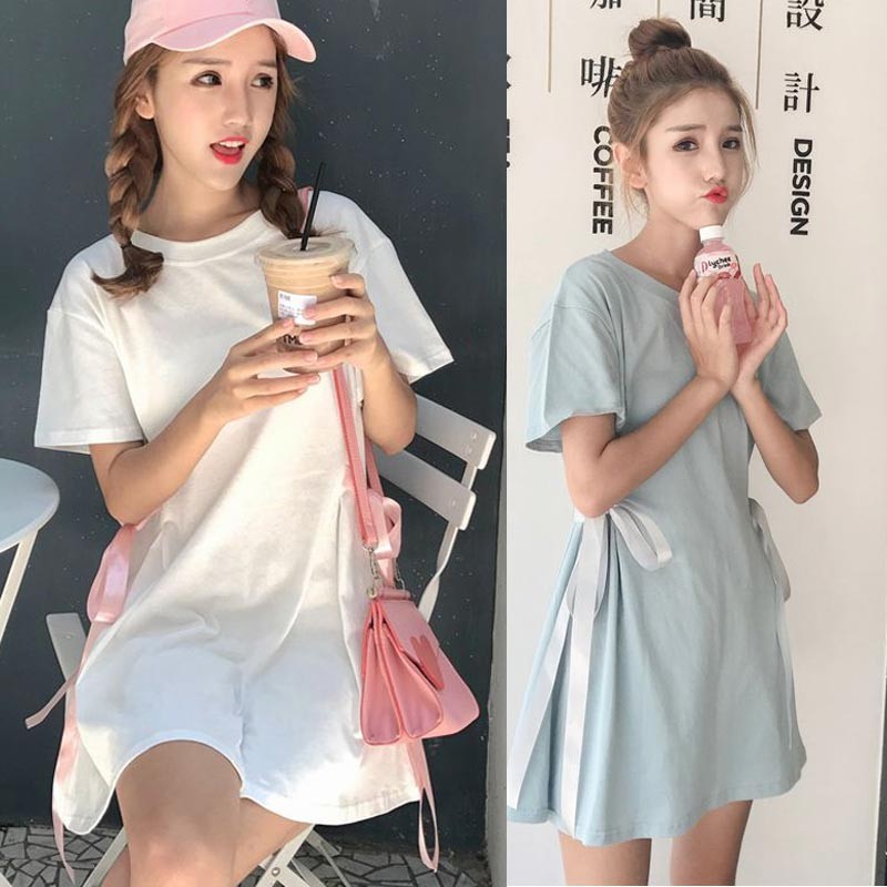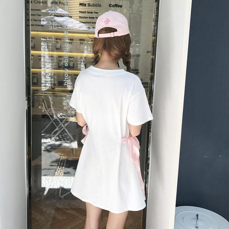 ビッグTワンピのウエストにリボンをつけて結んだだけで超キュートに☆
