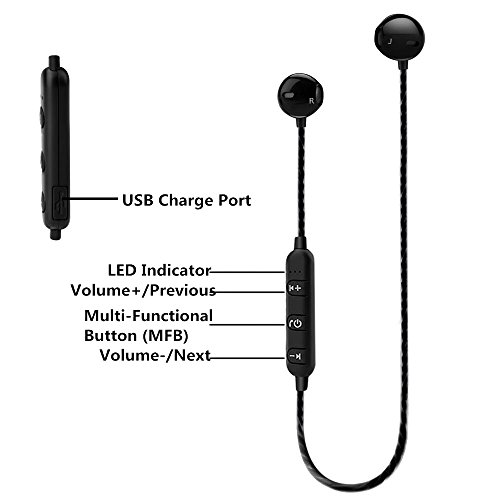 Specification: Style: Half in-ear headphone Cable Length: 0.5 m Range: 10 meters (33ft) Charging Port: Micro USB Standby Time: 40 hours Play Time: 3 hours Battery Capacity: 55 mAh Speaker Impedance: 32 Ω Frequency Response: 20-2000 HZ Weight: 0.42 oz Microphone: Yes Control Button: Yes Function: Mic, voice control, 3D stereo surround design smart accessories