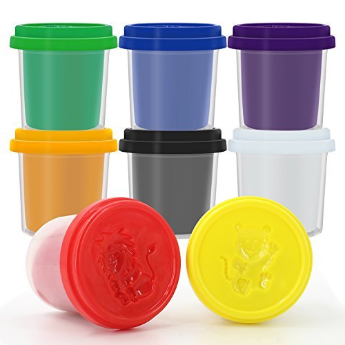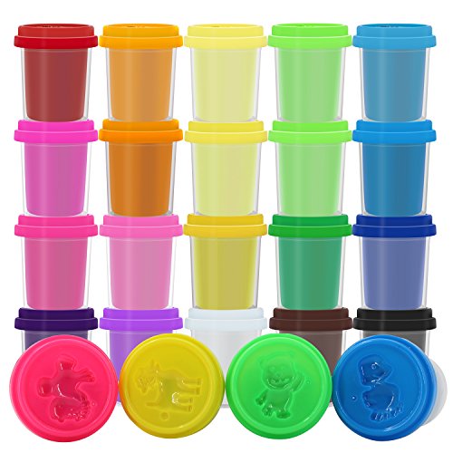 PREFERENTIAL COMBINATION - SySrion clays includes 20 pairs googly eyes, 5 ring mounts, 10 black noses, 17pcs fruits & vegetables & animals modes(random color), an idea book, clay cutting tools, 24 bright color doughs (0.7 OZ each), 16.8 OZ in total.