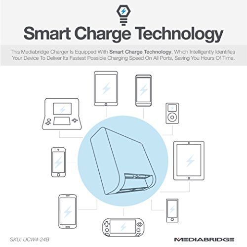 Mediabridge USB Wall Charger - 4 Port - 24 Watt / 4.8 Amp - Smart Charge Technology for iPhone, iPad, Samsung, HTC, Motorola & More - UL Certified - (Part# UCW4-24B )