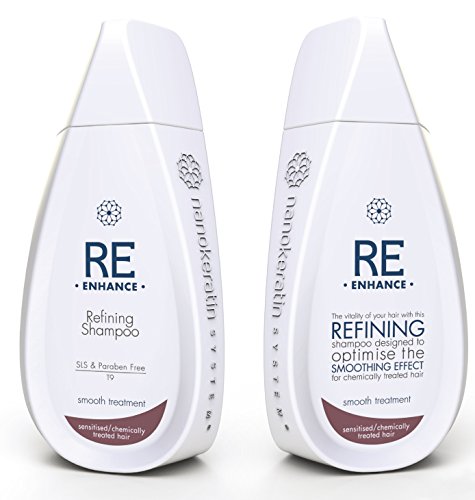 Nanokeratin System Re-enhance Refining Shampoo for sensitised / chemically-treated hair is a paraben and SLS free shampoo designed to gently cleanse your hair while enhancing its highlights.