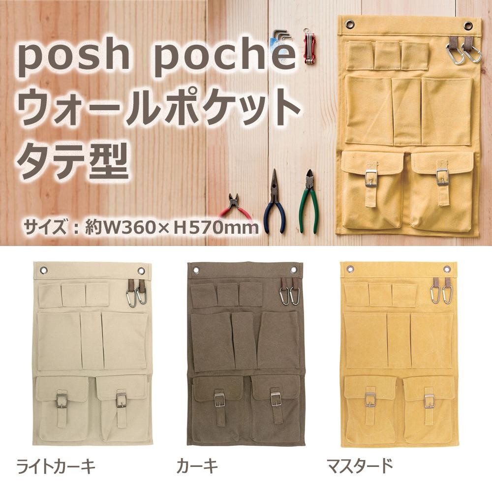 ポケットは大・中・小を合わせて、8個!!ミリタリーテイストのウォールポケットです。丈夫な素材なので、長く愛用して頂けます。 製造国:中国 素材・材質:綿、ポリエステル、レーヨン 商品サイズ:約W360×H570mm 仕様:カラビナ付き ※サプライヤー直送品 ご注文後2~3営業日後の出荷となります【商品名】posh poche(ポッシュポッシュ) ウォールポケット タテ型  カーキ・POS-WPT-KH
