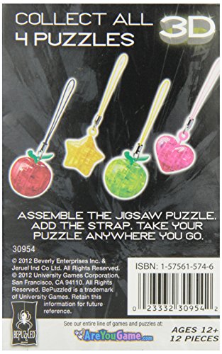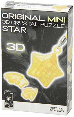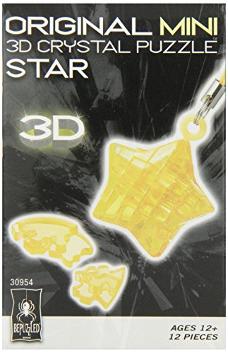 -. Binding : Toy -. Brand : Bepuzzled -. EAN : 0233323095426 -. Feature : The Mini Original 3D Crystal Puzzle - Star has 12 pieces and comes with an accompanying keychain strap / This delightful, challenging puzzle features uniquely shaped, interlocking crystalline pieces that take puzzling to a whole new dimension / Once you've pieced it together, you can use the translucent star to decorate your key chain, or use it as a charm or a pendant / Designed for fun on the go, the Mini 3D Crystal Puzzle is intended for puzzlers age 12 and over; measures 3 x 1 x 4.8 Inch / BePuzzled is more than just jigsaw puzzles - it's puzzle-plus -. IsAdultProduct : 0 -. Label : University Games -. Manufacturer : University Games -. Model : 30954 -. MPN : 30954 -. PackageQuantity : 1 -. PartNumber : 30954 -. ProductGroup : Toy -. ProductTypeName : TOYS_AND_GAMES -. Publisher : University Games -. Size : One Size -. Studio : University Games -. Title : BePuzzled Mini 3D Crystal Puzzle - Star -. UPC : 023332309542 -. Warranty : 30 day warranty against manufacturer defects