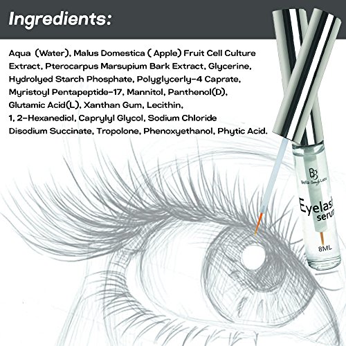Lash growth serum Contains natural vitamins and amino-acids that stimulate lash & brow hair roots growth. FREE of paraben, color, sulphate, fragrance, SLS, PEG, and gluten. Vegan. Cruelty Free.