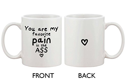 -. Brand : 365 Printing -. Color : white -. EAN : 0781171871780 -. Feature : Funny Coffee Mug - You Are My Favorite Pain in the Ass / Ceramic Coffee mug (1 piece per order). Microwave and top rack Dishwasher Safe. FDA Approved, Prop 65 & EURO Compliant / Item Size: 3.75"(95mm) height x 3.23"(83mm) diameter / Made to order / Perfect birthday gift -. Label : 365 Printing -. Manufacturer : 365 Printing -. PackageQuantity : 1 -. ProductGroup : Kitchen -. ProductTypeName : KITCHEN -. Publisher : 365 Printing -. Size : 14 Ounce -. Studio : 365 Printing -. Title : Funny Ceramic Coffee Mug - You Are My Favorite Pain in the Ass -. UPC : 781171871780