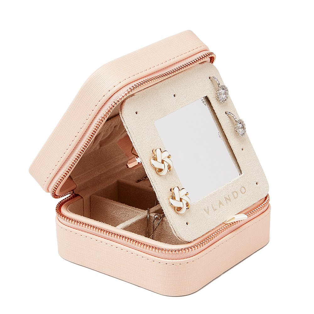 もっと堅固で、耐久性に優れたファスナーがあります。サイズ:105mm(H)X 105mm x 55mm 独特のデザインで、ミラーは自由に支えられる。裏地のビロードはジュエリーにもっと良い保護を与えることができます。 クロスシートを取り外し、収納スペースを調整することができます。様々なアクセサリー、ブレスレット、ネックレス、口紅などを収納できます。 スペース使用率を向上させるためにピアスホルダーが追加されました。 贈り物に最適:母の日プレゼント、 大切な恋人、ご家族、ご友人へプレゼントとしても良い選択です。
