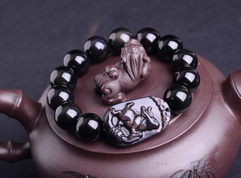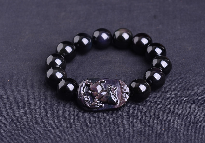 开光卯戌太极姻缘手串黑曜石属兔八宝旺卯手链太阳迎福男女