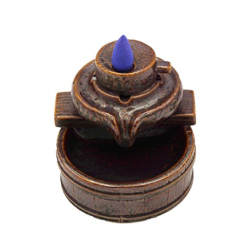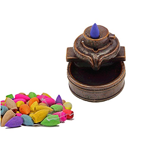 MIUSIE Ceramic Smoke Backflow Incense Burner Pocerlain Decorated Charcoal Censer Holder Home Decor Gift with 40 Cones,S4