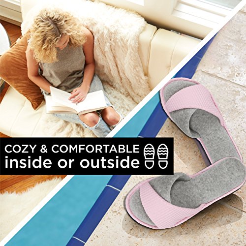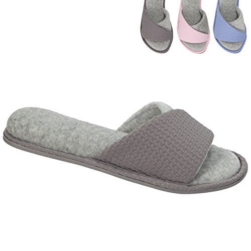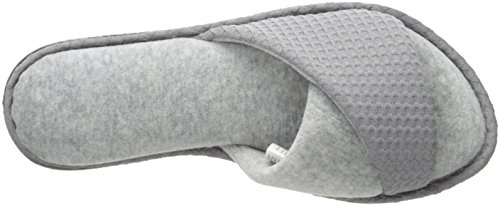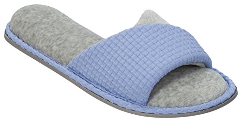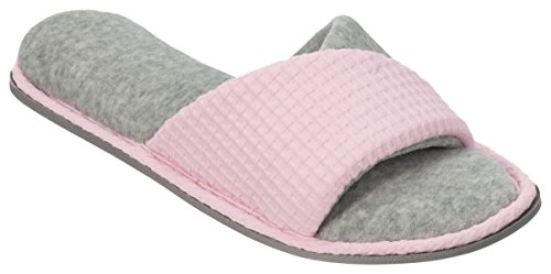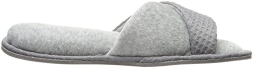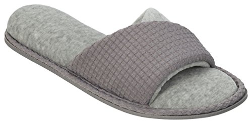 Product DescriptionOpen up to superior comfort! these casual heathered open toe slide slippers give you the support of a proven constructed outsole and the comfort of a plush micro terry sock.0