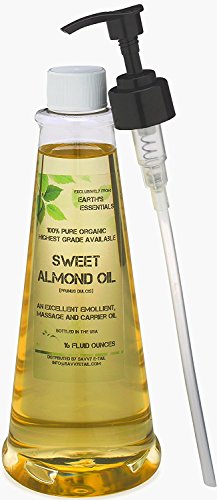 Convenient 16 Oz. Pump Bottle Filled With 100% Pure Organic Sweet Almond Oil From Earth's Essentials