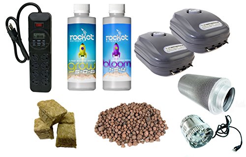 -. Feature : 1 - 600D Polyester Nylon grow tent / 1 - 4" inline fan with a Carbon Scrubber Air Filter / 3 - 225 light LED grow lights (for a total of 675) & Digital Timer / 8 - Reservoir Tanks / Net pots, rockwool cubes, two 4-outlet air pump, Grow & Bloom Starter Nutrients