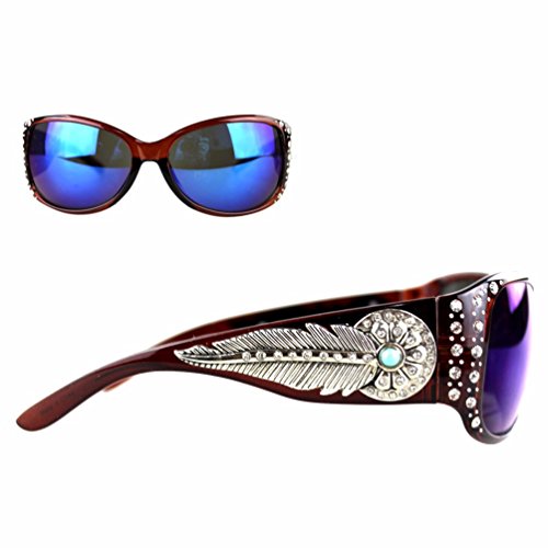 Montana West Ladies Sunglasses Rhinestones Daisy Feather Concho Turquoise Stone UV 400